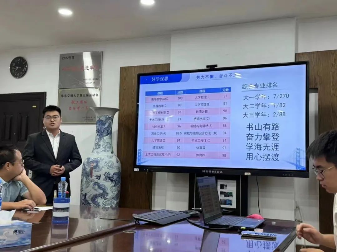 经个人提出申请,各班级评议小组进行民主推荐,并经学院进行资格初审,确定13名国家奖学金候选人进行公开答辩。参加答辩的同学们从专业学习情况、思想政治、个人成就、未来展望等各方面对个人情况进行简单汇报。他们精神饱满,将自己最好的状态展示给各位评委。同时他们有条不紊地回答相关问题,从多个角度展现自身良好的精神面貌和出色的能力,更展现了土建学子的风采与担当。