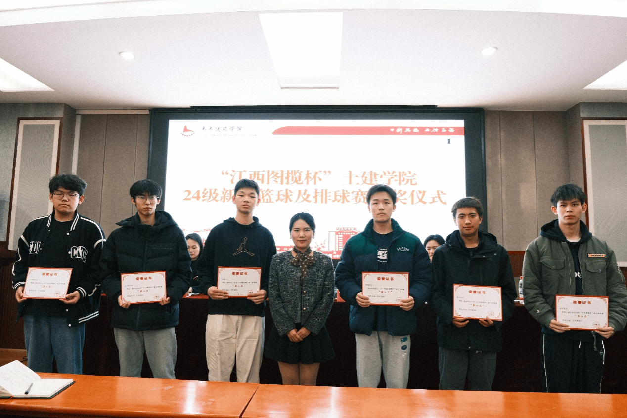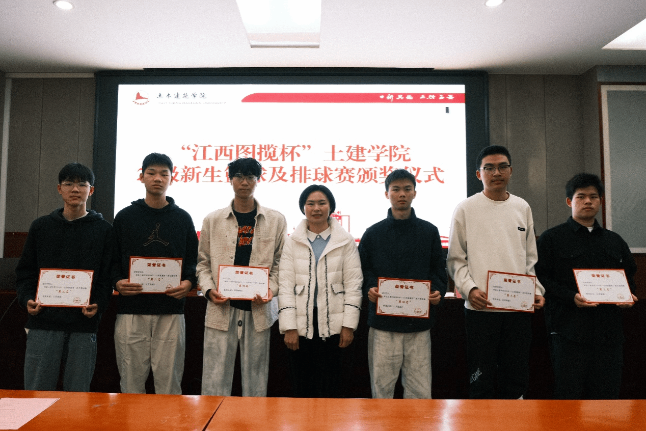 报告会前,校友李永珍和公司销售部经理邓梦云、综合部经理宋利娟分别为“江西图揽杯”土建学院2024级新生篮球赛、排球赛获奖代表队颁奖。
