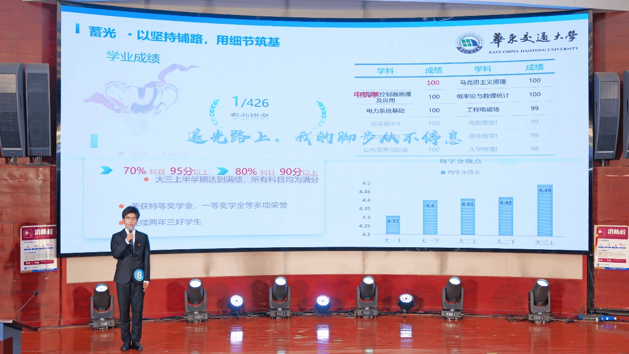 星河璀璨,青春当燃。本次评选分为研究生组和本科生组,21位候选人按照抽签顺序依次上台,通过视频展示、风采展示、选题作答三个环节依次进行个人展示。他们中有学术科研的佼佼者,有志愿服务的践行者,有创新创业的开拓者,也有艺术体育的追梦者。他们的精彩表现是华交学子弘扬“火车头”精神、争做“新铁军”的充分展示,赢得了阵阵掌声。