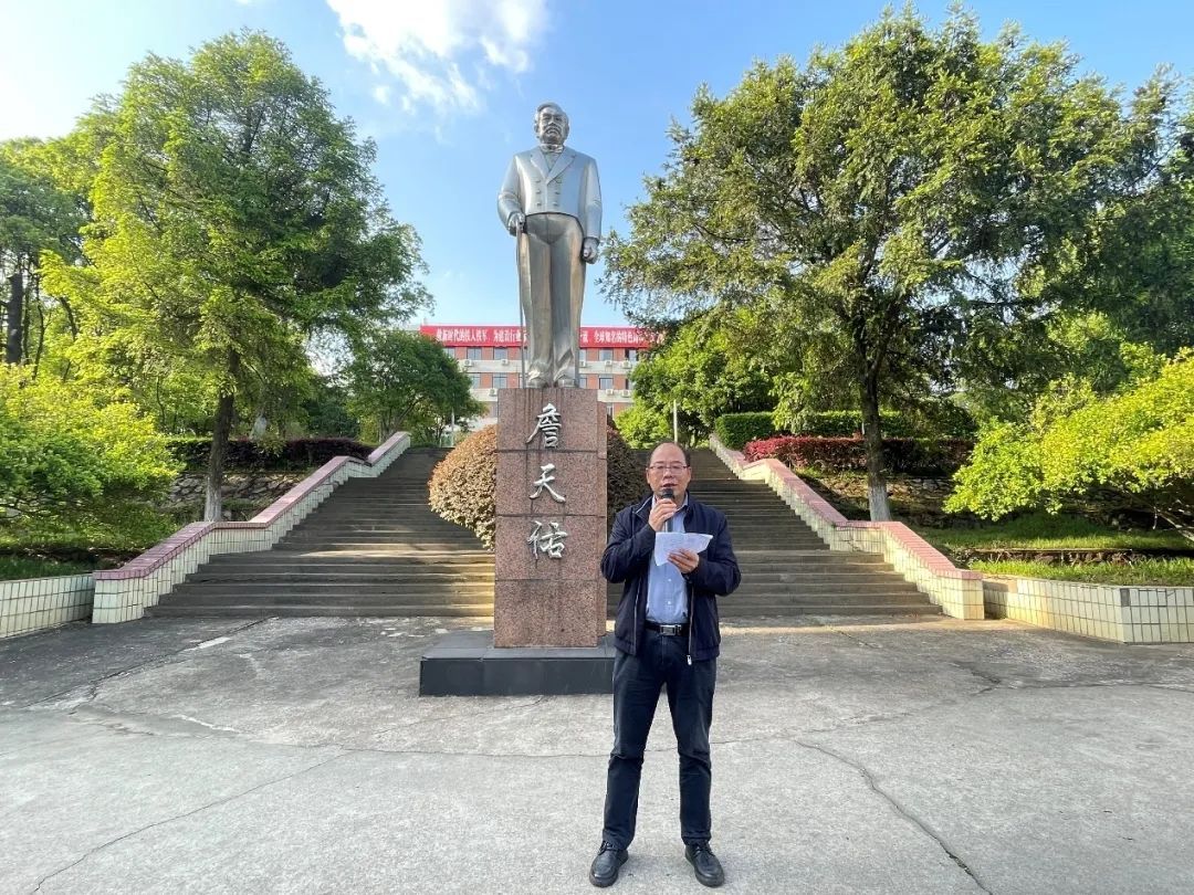 在詹天佑像前举行“百年匠心,筑梦未来”纪念詹天佑先生诞辰164周年主题活动。学院党委副书记郑轶,团委书记、学工办主任万雯怡,2023级城市轨道詹天佑班辅导员吴谨燕出席,2021级、2022级、2023级詹天佑学生参与纪念活动。