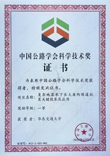 中国公路学会科学技术奖是由国家科学技术奖励工作办公室批准2002年设立,是面向全国公路交通行业的权威科技奖项,奖励在公路交通科学技术进步中作出突出贡献的个人和组织。2022年度,共评选出205项获奖项目。其中,科学技术奖202项(特等奖7项,一等奖44项,二等奖91项,三等奖60项),科普类奖3项(一等奖1项,二等奖1项,三等奖1项)。