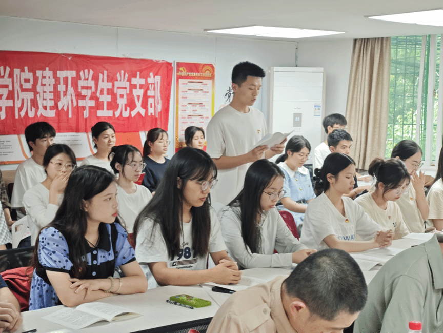 会上,建环学生党支部代表谢天同学介绍了《中国共产党纪律处分条例》的具体内容,他表明党纪学习教育可以增强党性修养,坚定理想信念,提高政治觉悟。